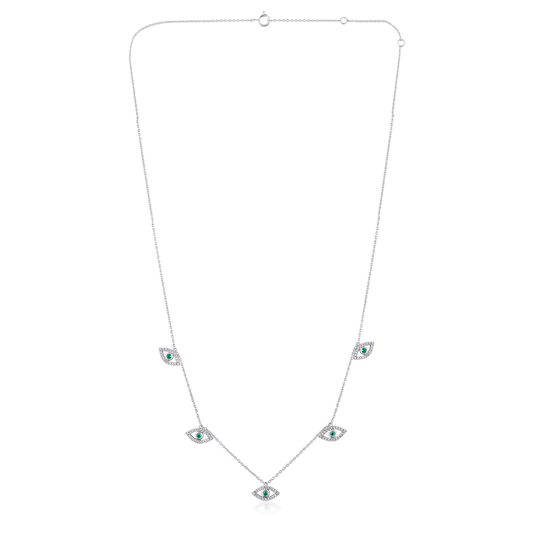 Solid Gold 0.2ct Natural Diamond Evil Eye Drop By Yard Charm Necklace
