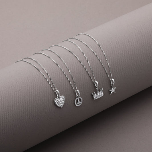 Solid Gold 0.2ct Natural Diamond Crown Charm Pendant Necklace