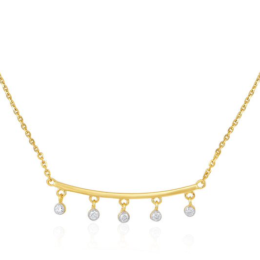 Solid Gold 0.13ct Natural Diamond Curved Bar Dangle Necklace