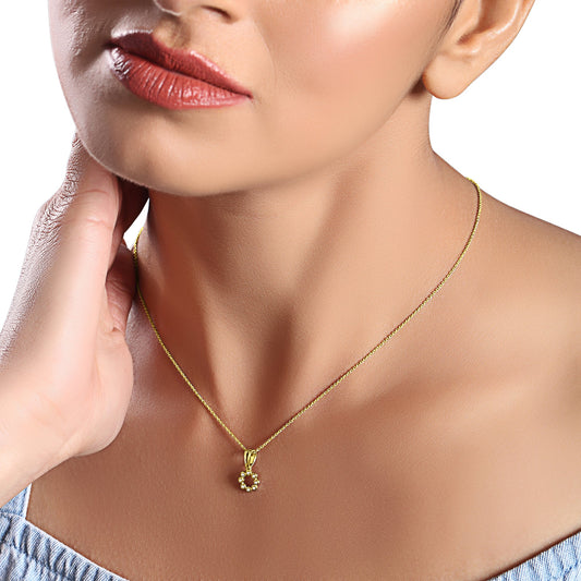 Solid Gold 0.1ct Natural Diamond Circle Round Bead Charm Necklace