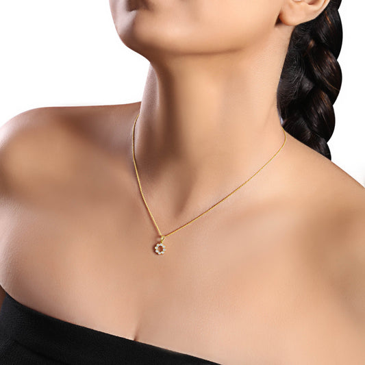 Solid Gold 0.1ct Natural Diamond Circle Round Locked Halo Charm Necklace