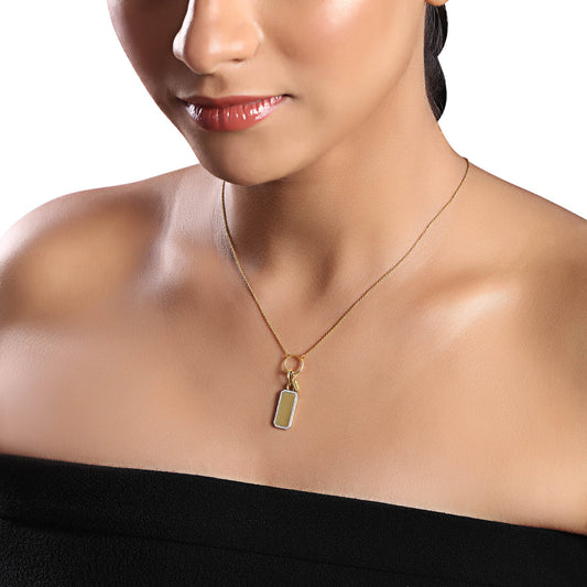 Solid Gold 0.14ct Natural Diamond Double Tag Bar Ring Locket Necklace