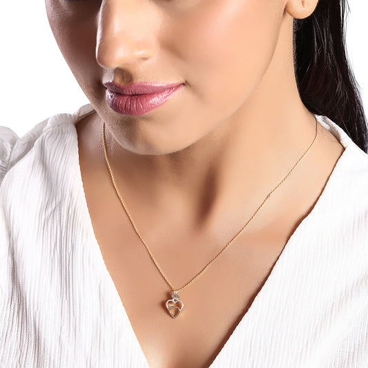 Solid Gold 0.1ct Natural Diamond Crown 2 Heart Link Pendant Necklace