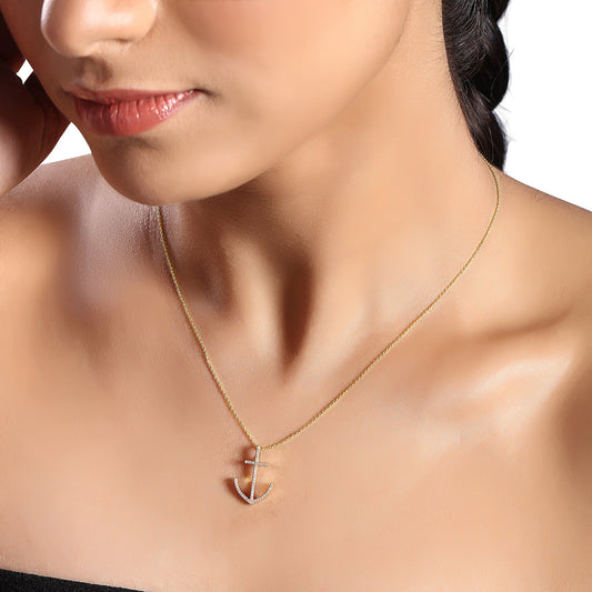Solid Gold 0.1ct Natural Diamond Cross Anchor Nautical Charm Necklace
