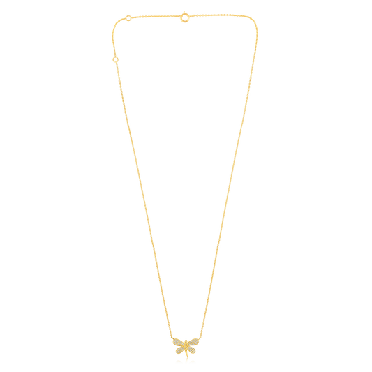 Solid Gold 0.14ct Natural Diamond Dragon Fly Charm Necklace