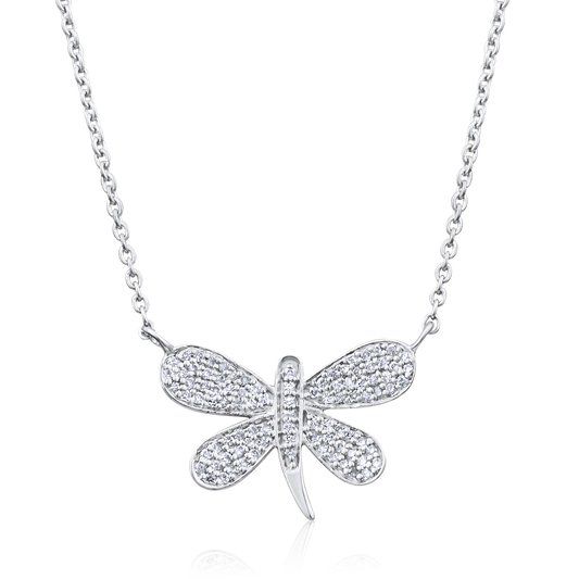 Solid Gold 0.14ct Natural Diamond Dragonfly Charm Pendant Necklace