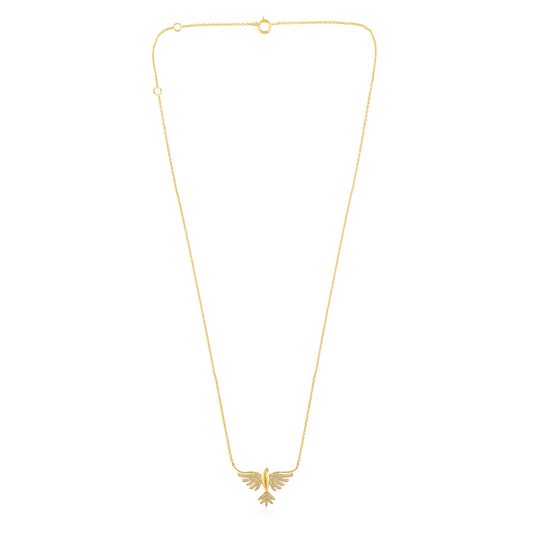 Solid Gold 0.13ct Natural Diamond Phoenix Eagle Charm Pendant Necklace