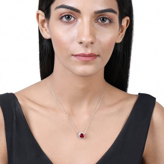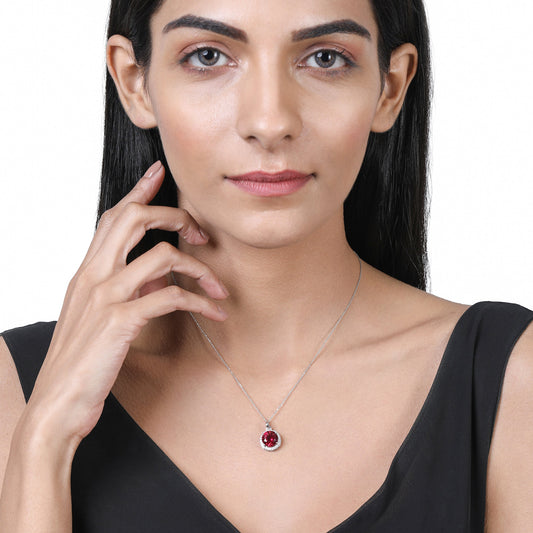 Solid Gold 5ct Natural Diamond w/ Ruby Round Necklace
