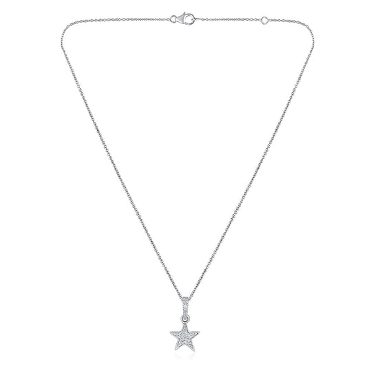 Solid Gold Natural Diamond Small Star Charm Necklace