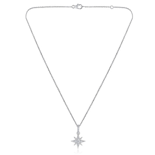 Solid Gold Natural Diamond Small Shining Star Charm Necklace