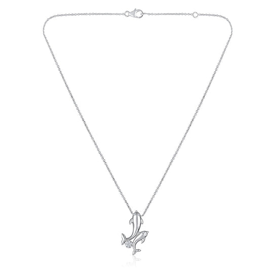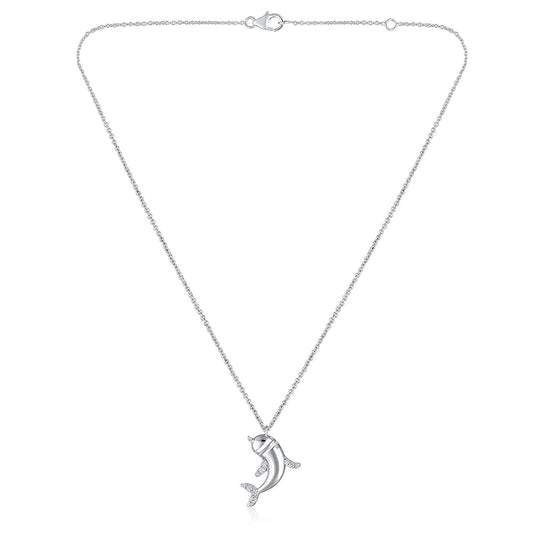 Solid Gold Natural Diamond Dolphin Charm Necklace