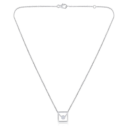 Solid Gold Natural Diamond Square Circle Charm Necklace