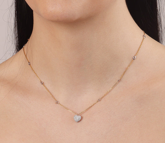 Solid Gold Natural Diamond Multi Pear Cushion Heart Station Necklace