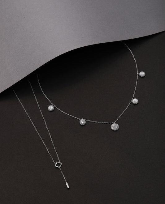 Solid Gold Natural Diamond Clover Y Drop Lariat Necklace