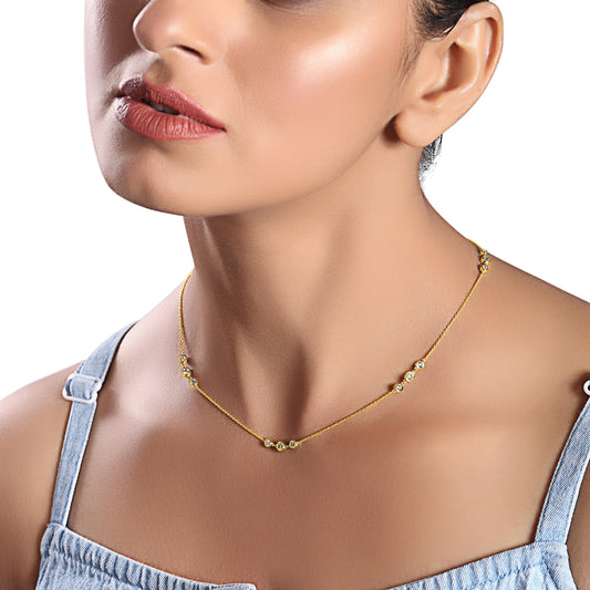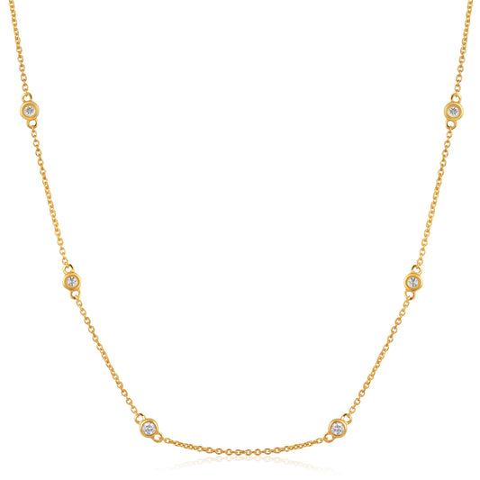 Solid Gold 0.8ct Natural Diamond By-Yard Cluster Bezel Necklace