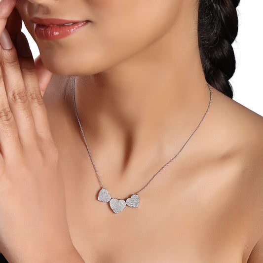 Solid Gold 0.82ct Natural Diamond 3 Heart Studded Pendant Necklace
