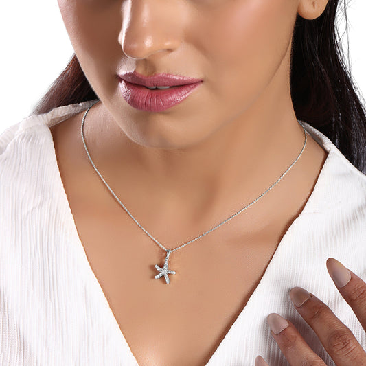 Solid Gold 0.7ct Natural Diamond w/ Natural Ruby Starfish 2 Way Charm Necklace