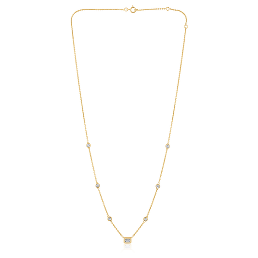 Solid Gold 0.71ct Natural Diamond Emerald Round Bezel By-Yard Necklace