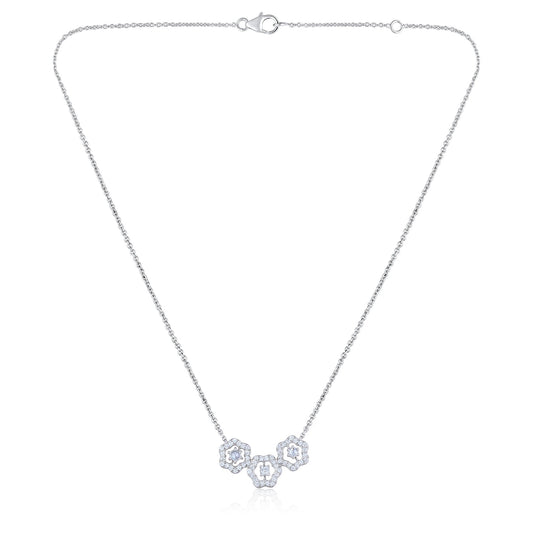 Solid Gold 0.6ct Natural Diamond Rose-Cut Cushion 3 Flower Necklace
