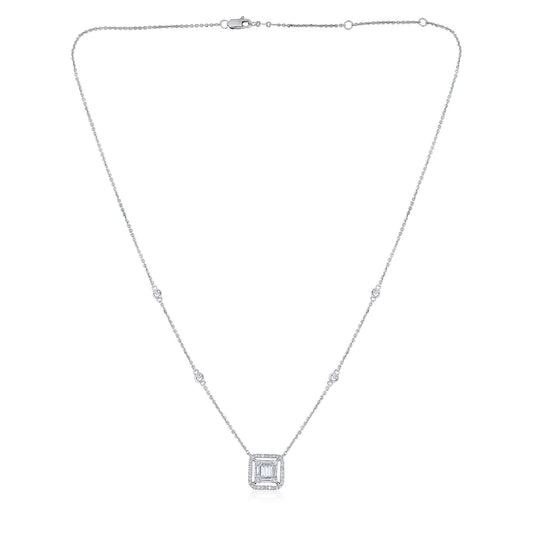 Solid Gold 0.7ct Natural Diamond Baguette Rectangle Pendant Necklace