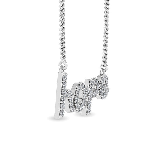 Solid Gold 0.7ct Natural Diamond Studded Hope Script Necklace