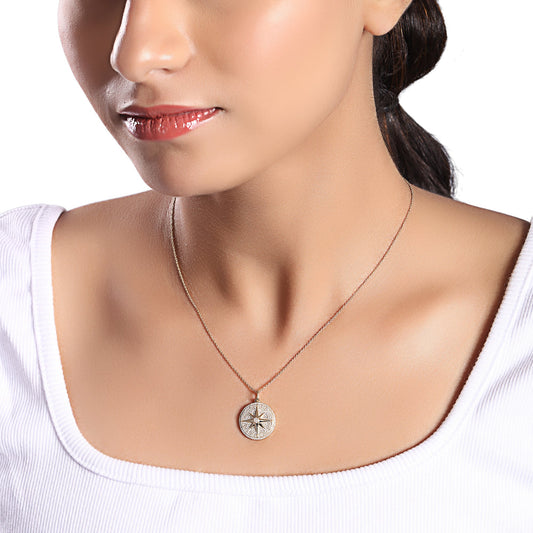 Solid Gold 0.5ct Natural Diamond Compass Moon Star Sun Charm Necklace