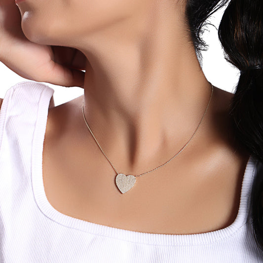 Solid Gold 0.61ct Natural Diamond Heart Love Dome Curved Big Necklace