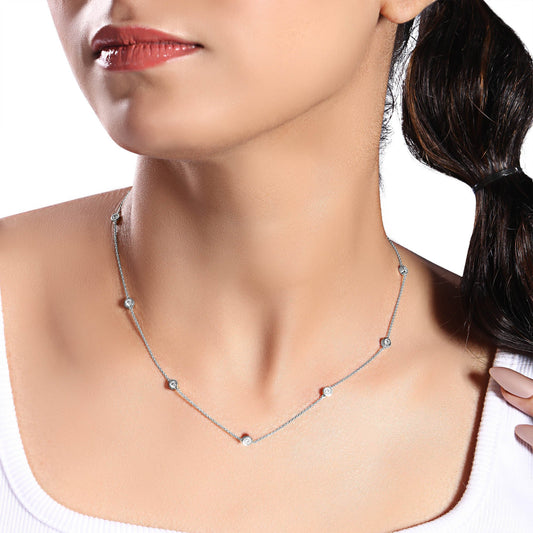 Solid Gold 0.62ct Natural Diamond By-Yard Station Dangle Round Necklace