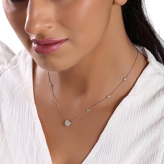 Solid Gold 0.62ct Natural Diamond Halo By-Yard Station Necklace