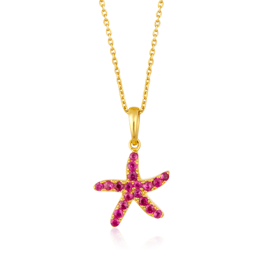 Solid Gold 0.64ct Natural Diamond w/ Natural Ruby Starfish 2 Way Charm Necklace