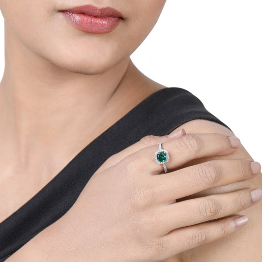 Solid Gold 1.5ct Natural Diamond w/ Emerald Cushion Ring