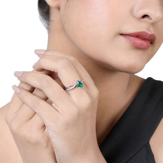 Solid Gold 1ct Natural Diamond w/ Emerald Pear Twist Ring