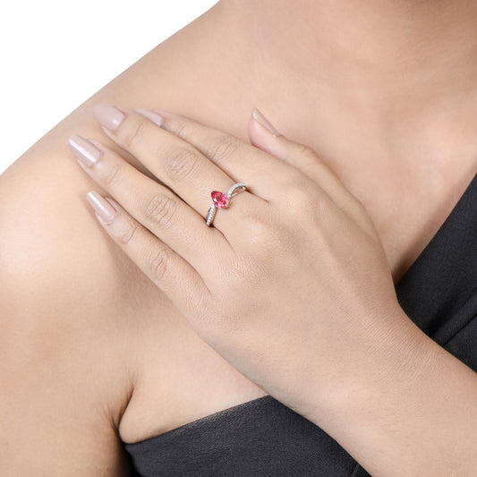 Solid Gold 1.4ct Natural Diamond w/ Ruby Pear Twist Ring