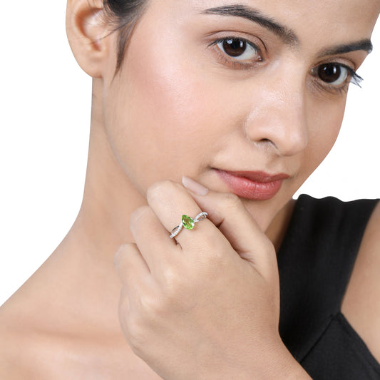 Solid Gold 1ct Natural Diamond w/ Peridot August Pear Ring