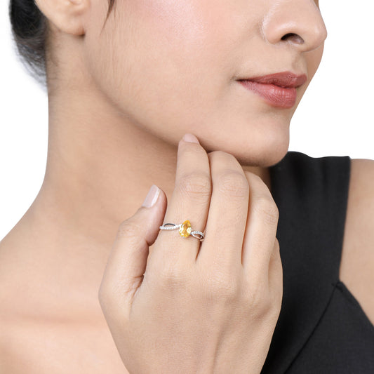 Solid Gold 1ct Natural Diamond w/ Citrine November Pear Ring