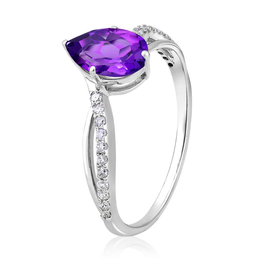 Solid Gold 1ct Natural Diamond w/ Amethyst February Pear Ring