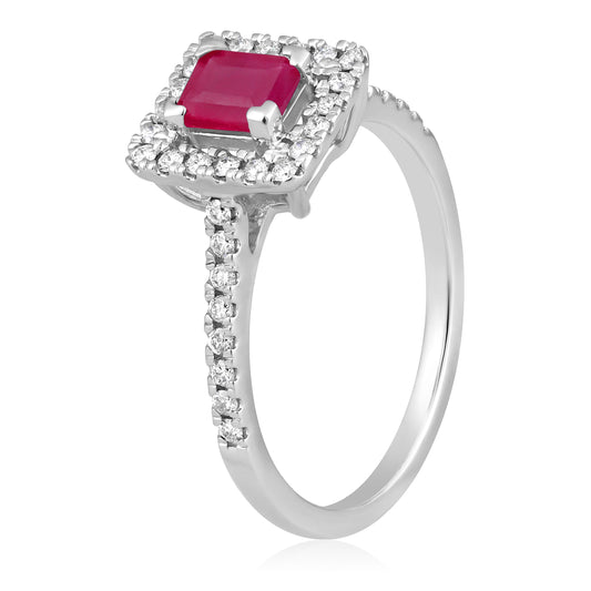 Solid Gold 1ct Natural Ruby w/ Natural Diamond Solitaire Square Ring