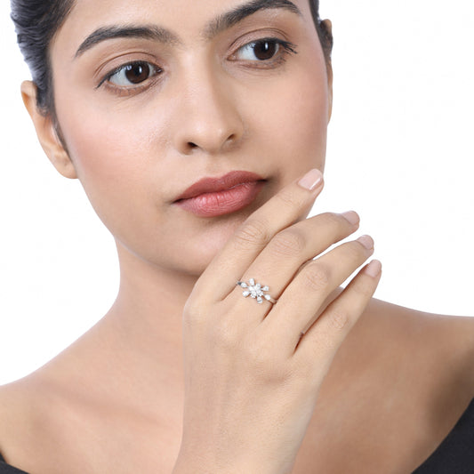 Solid Gold 0.5ct Natural Diamond Pear Snowflake Ring