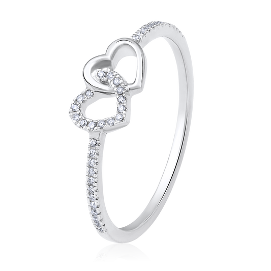 Solid Gold 0.1ct Natural Diamond 2 Heart Intertwine Love Ring