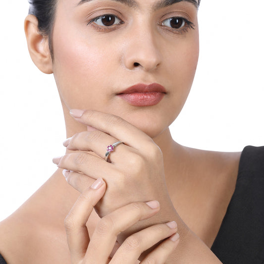 Solid Gold 0.23ct Natural Diamond w/ Ruby Flower Ring