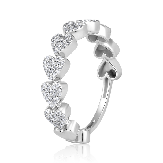 Solid Gold 0.22ct Natural Diamond Multi Heart Link Band Ring