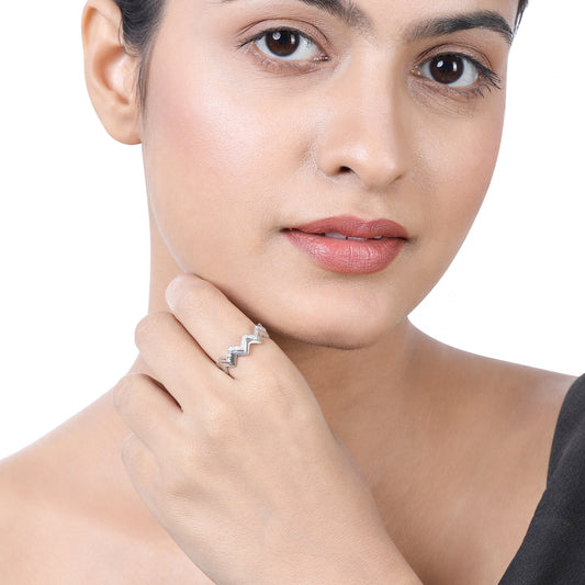 0.34ct Natural Diamond Solid Gold Curved Wave Band Ring