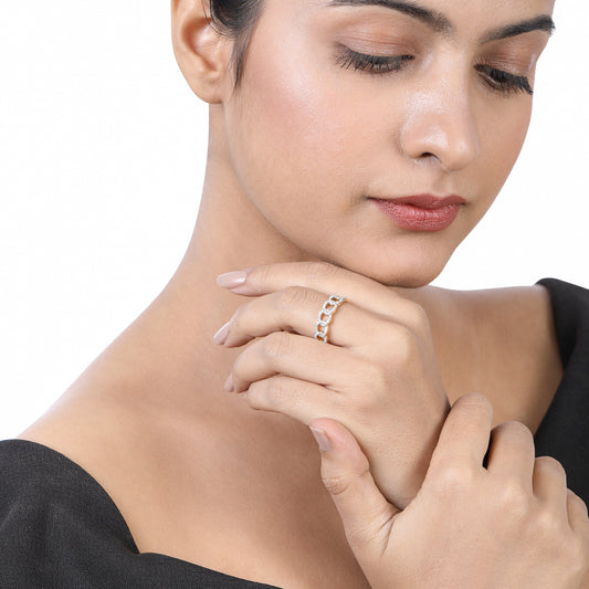 0.2ct Natural Diamond Solid Gold Chain Link Band Ring