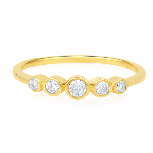 Solid Gold 0.03ct Natural Diamond 5 Stone Bezel Band Ring