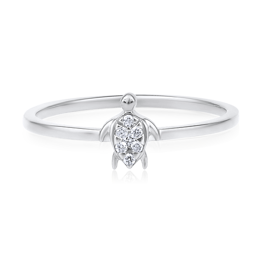 Solid Gold 0.04ct Natural Diamond Turtle Tortoise Charm Ring