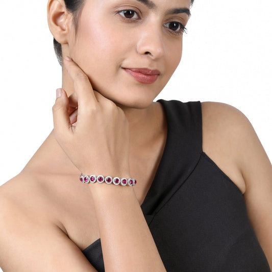 Solid Gold 14.7ct Natural Diamond w/ Ruby Tennis Bracelet