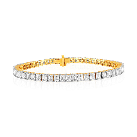 Solid Gold 13.25ct Emerald Natural Diamond 5mm Tennis Bracelet