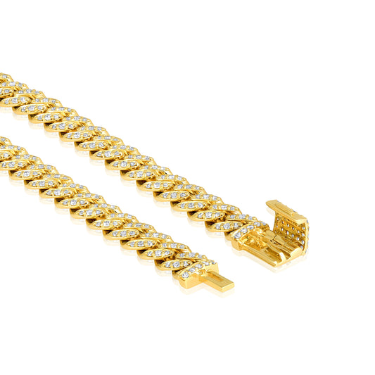 Solid Gold 2.1ct Natural Diamond 7mm Cuban Link Chain Bracelet
