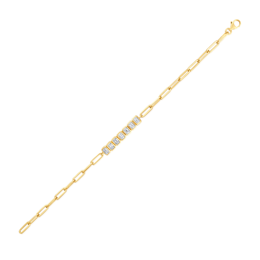 Solid Gold 2.24ct Natural Diamond Emerald Bar Paperclip Chain Bracelet