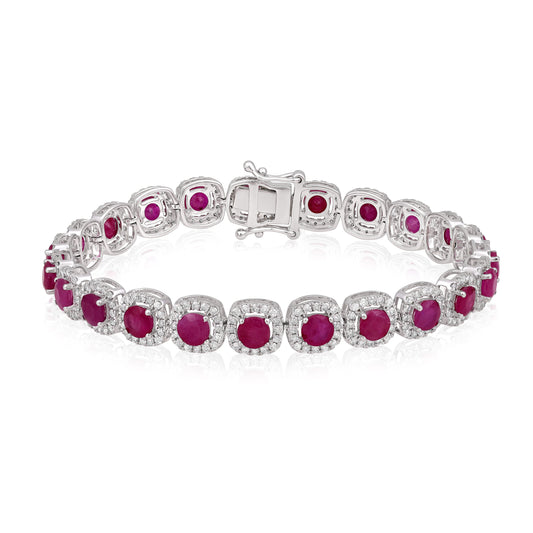 Solid Gold 13.1ct Natural Ruby w/ Diamond Cushion Halo Bracelet